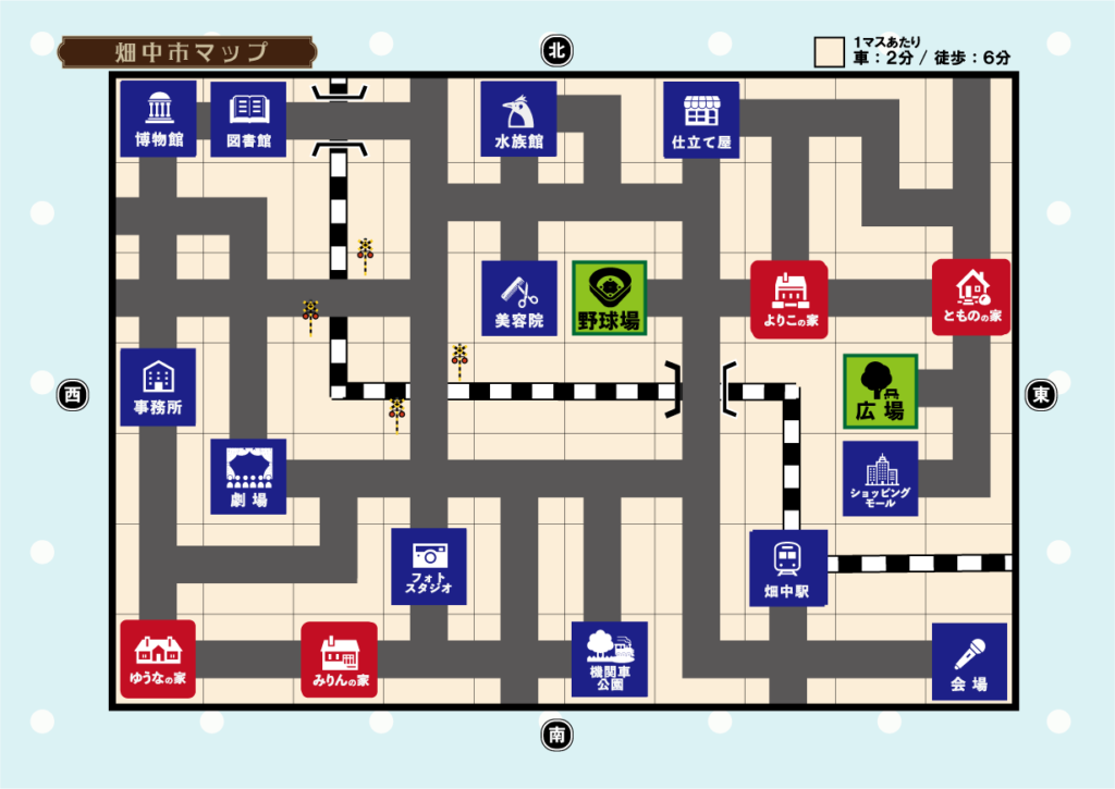 歩いて18分ということは、駅から会場に行く要領のように3マス先の施設であることが分かる。